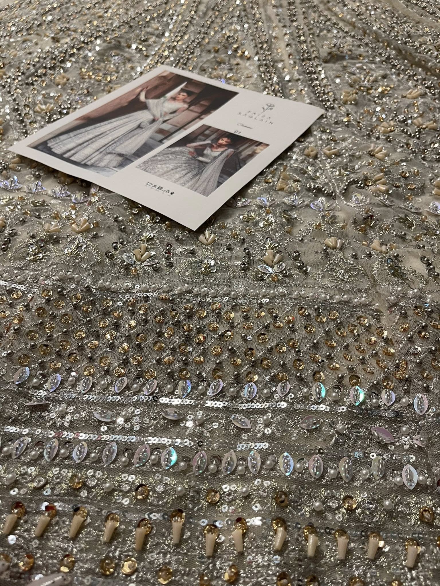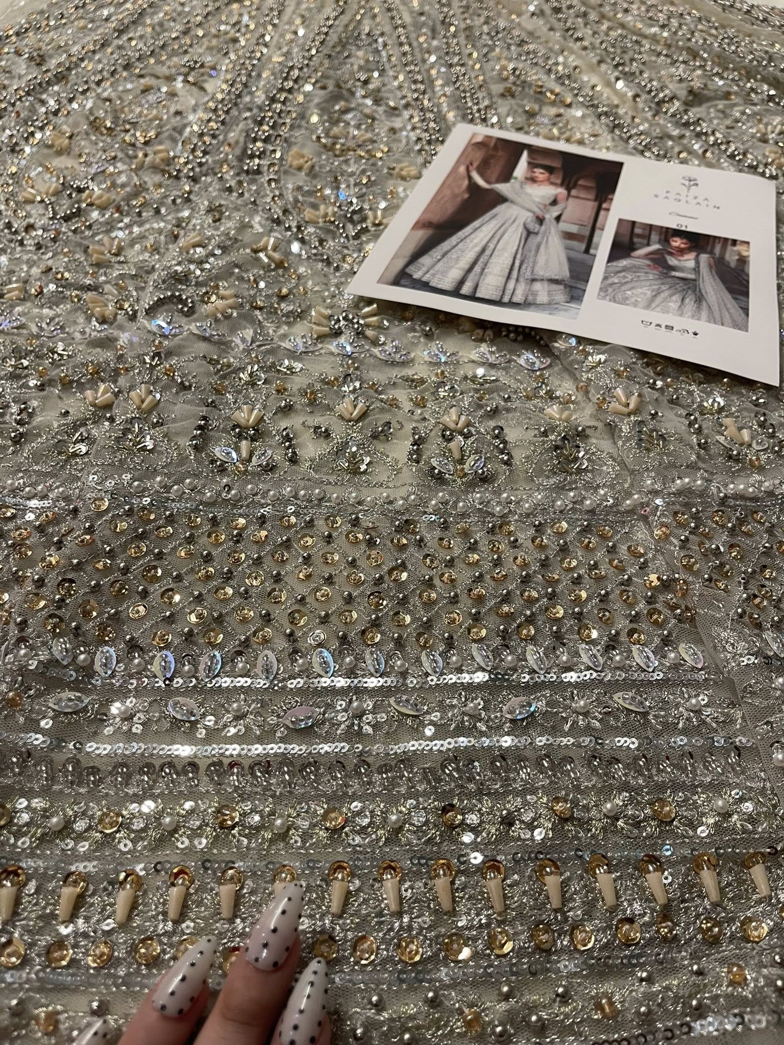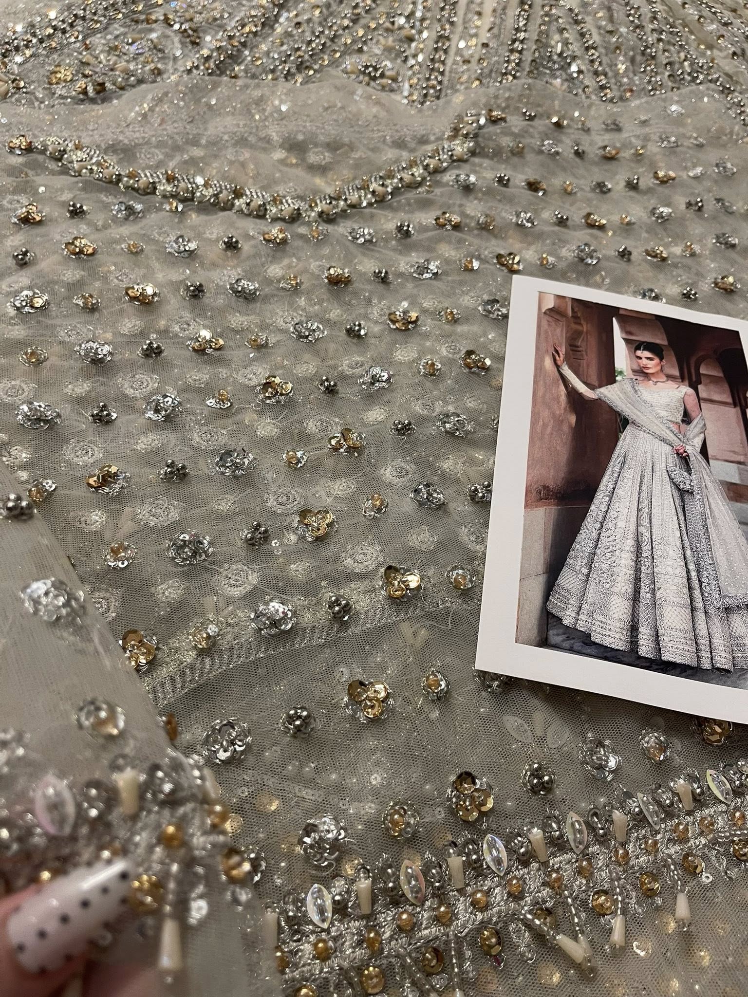 • Embellished Net DupattaDescription: Fusing immaculate craft with a classic silhouette, Cammi radiates grandeur. Cut from white net, the lehnga, choli and dupatta feature lavishly adorned resham, crystal and tilla motifs that sparkle with each step, making it a staple in your festive wardrobe.