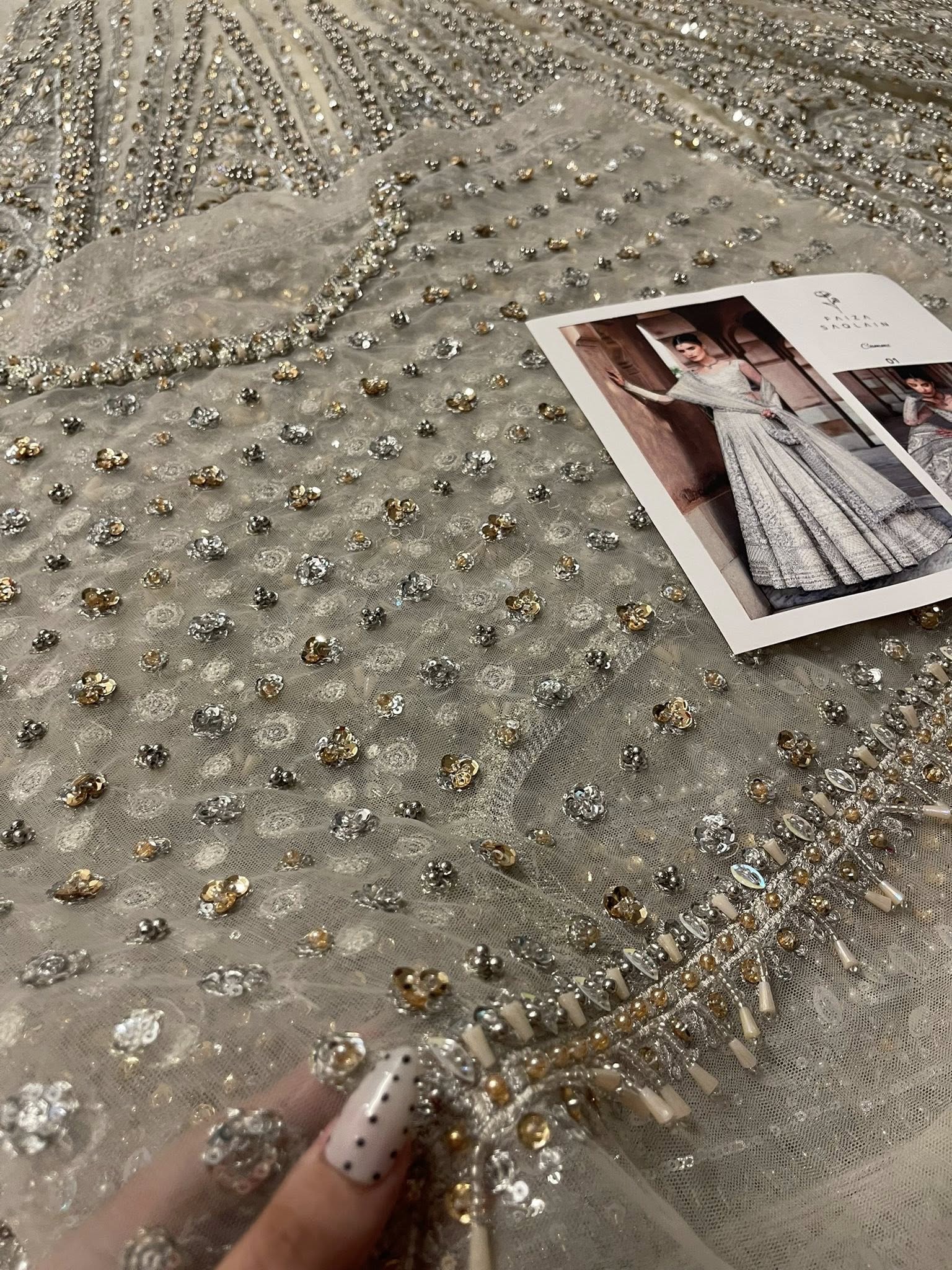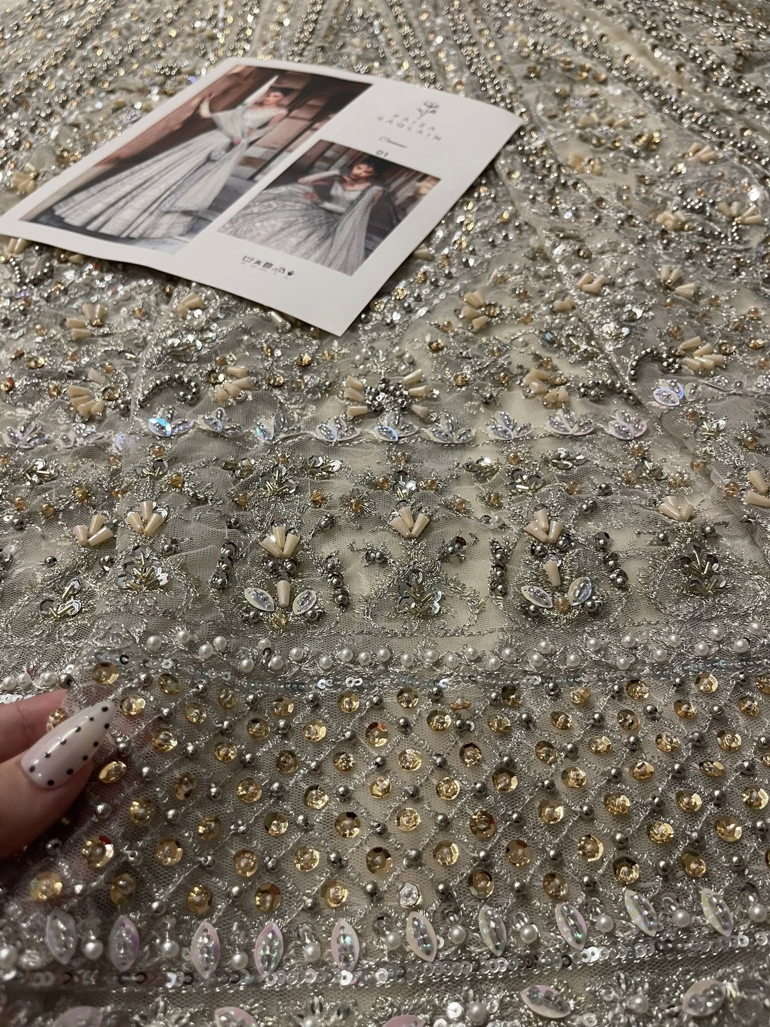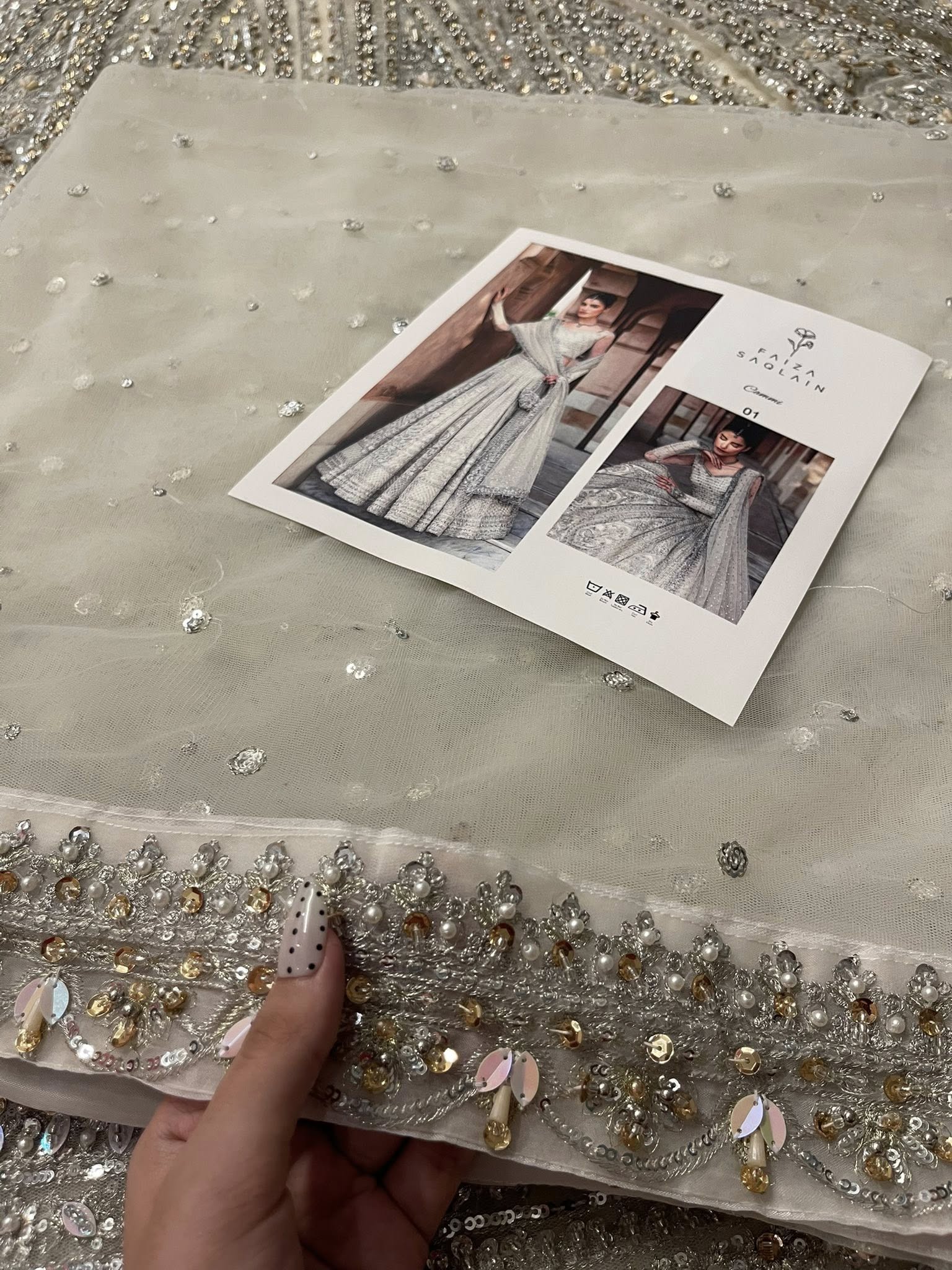 • Embellished Net DupattaDescription: Fusing immaculate craft with a classic silhouette, Cammi radiates grandeur. Cut from white net, the lehnga, choli and dupatta feature lavishly adorned resham, crystal and tilla motifs that sparkle with each step, making it a staple in your festive wardrobe.