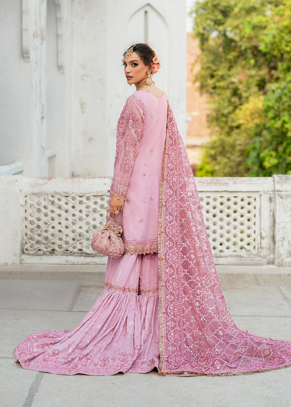 Step into sheer elegance with Gulnar – a captivating blend of modern luxury and timeless tradition. The organza shirt, with its soft cotton silk inner, creates a graceful silhouette, while the PK raw silk garara adds a touch of regal grandeur. Draped with a delicately flowing organza dupatta, Gulnar embodies sophistication and charm, making it the perfect choice for any opulent occasion. Let this enchanting ensemble elevate your style and leave a lasting impression.