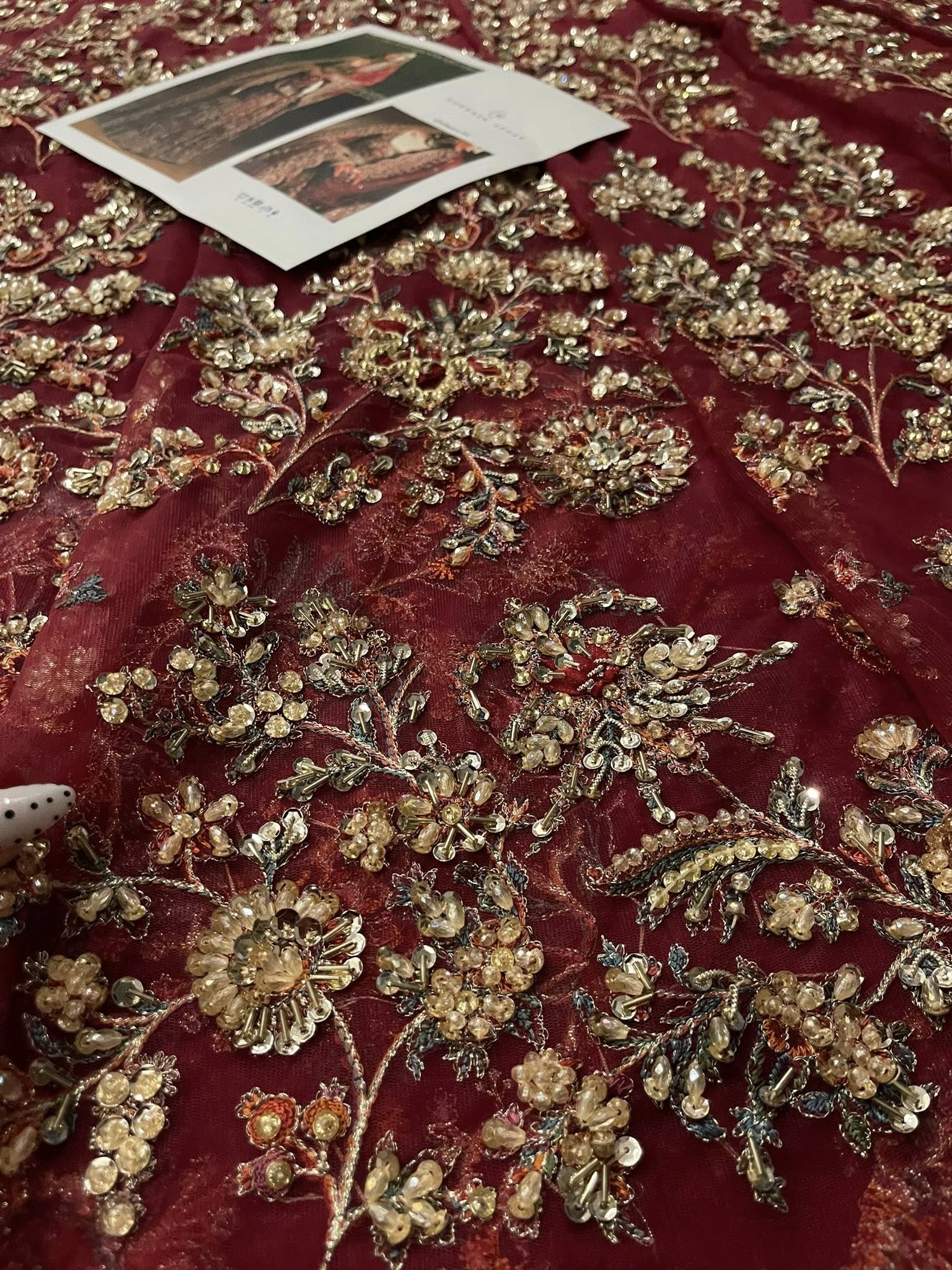 Hand Embellished Embroidery Sleeve BDR 1 Mtr Organza