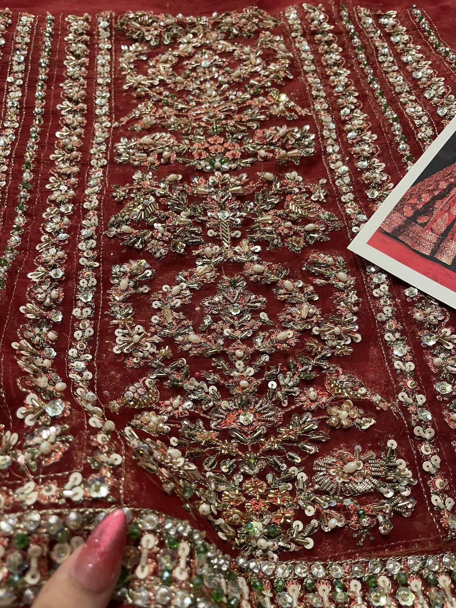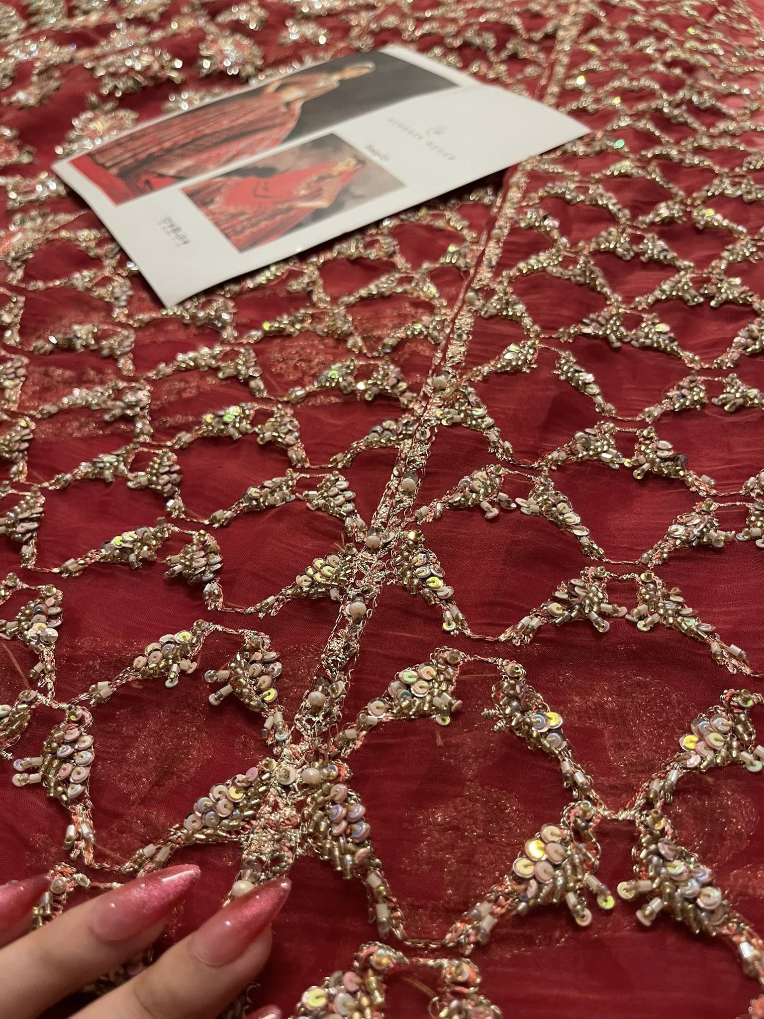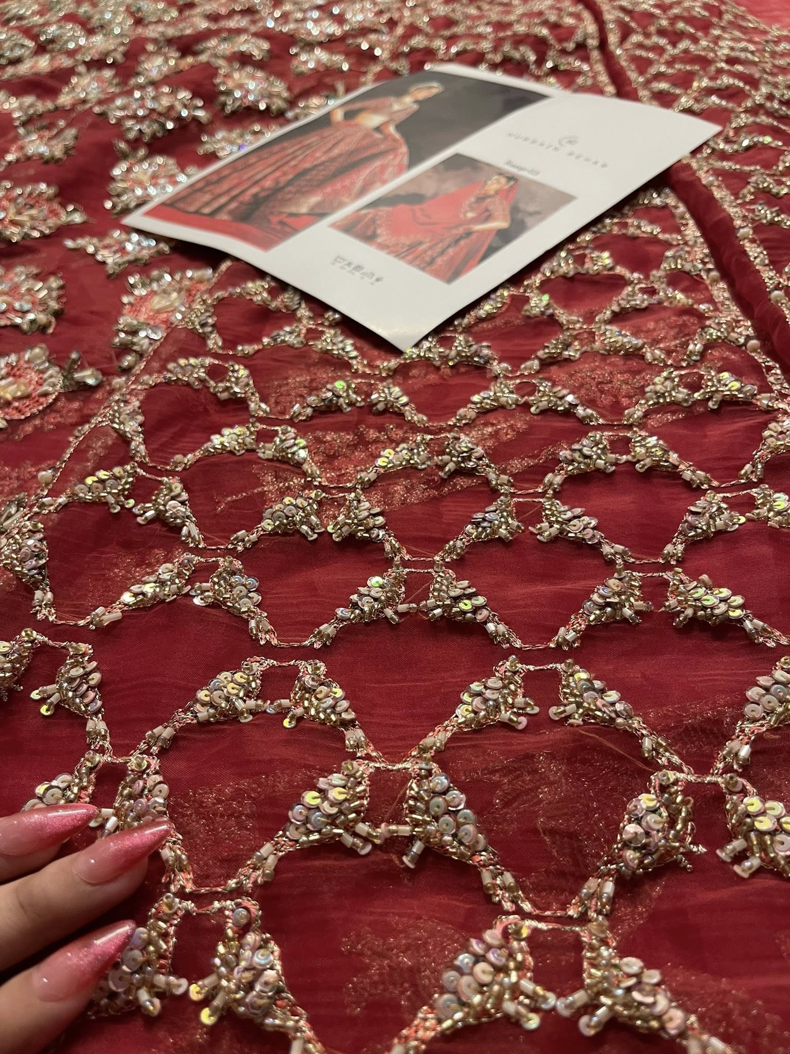 Introducing the exquisite red pure organza lehenga choli ensemble, featuring an impressive pure organza scalp cut work dupatta. This resplendent attire boasts intricate embellishments and a resplendent hue that will captivate all eyes. It adds an extra layer of elegance and sophistication to your ensemble. Each stitch is carefully crafted by skilled artisans, resulting in a stunning and unique design. The ethereal flow of the fabric and the opulent craftsmanship will make you feel like a true fashion connoisseur.